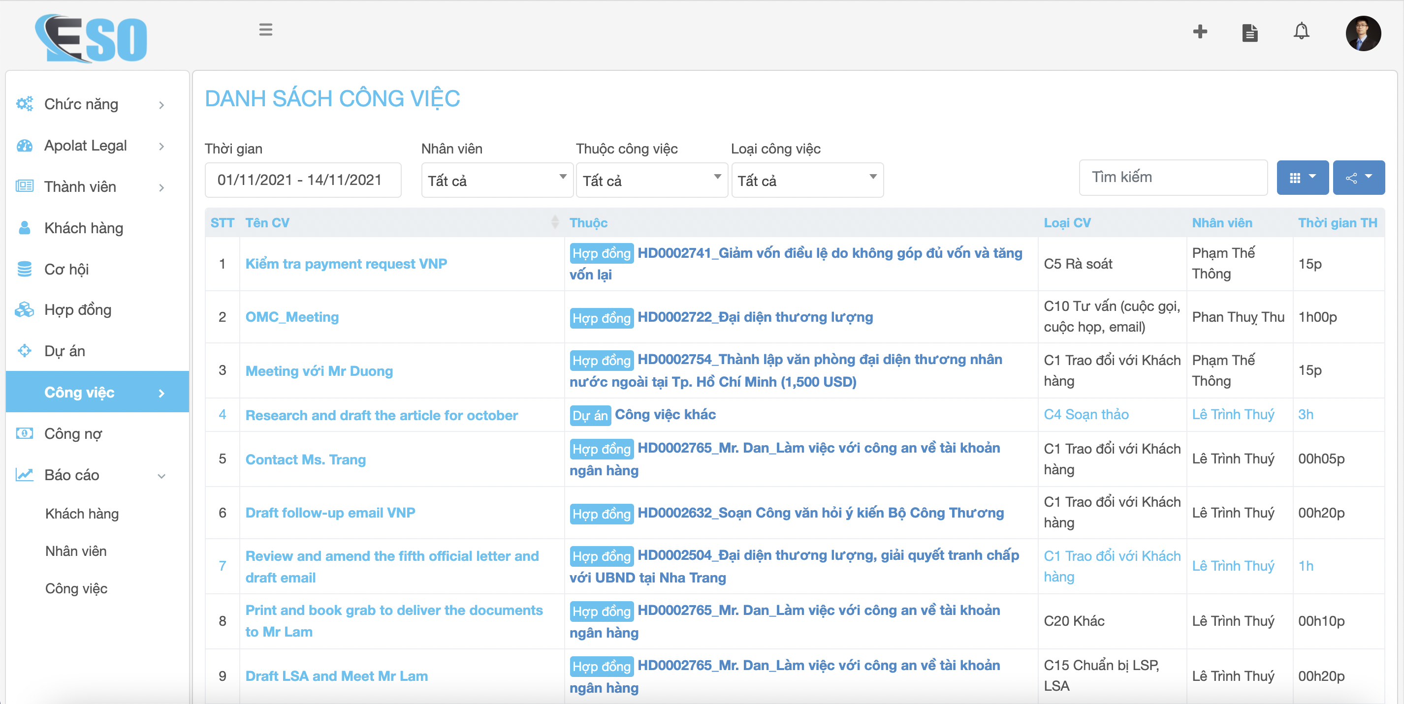 LawyerĐiều làm em hài lòng nhất khi dùng phần mềm là nội dung công việc của em rõ ràng, em biết mình phải làm những gì, công việc nào cần làm trước, công việc nào có thể làm sau. Và việc tính thưởng cho em rất rõ ràng và chính xác, không như trước kia khi tính thưởng thủ công cãi nhau suốt.
