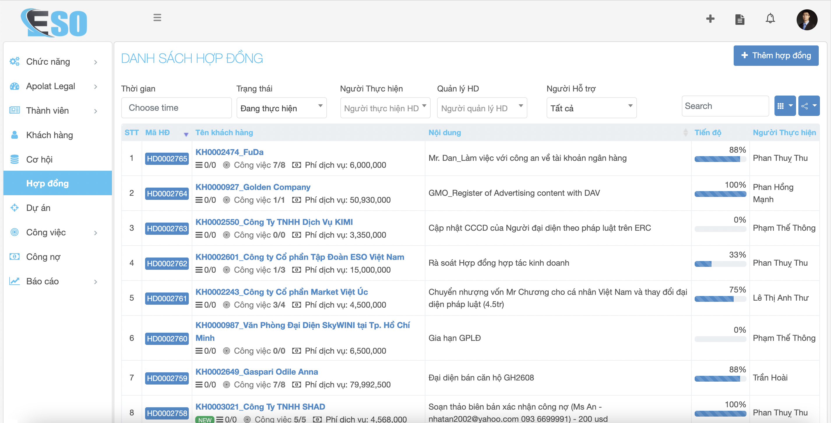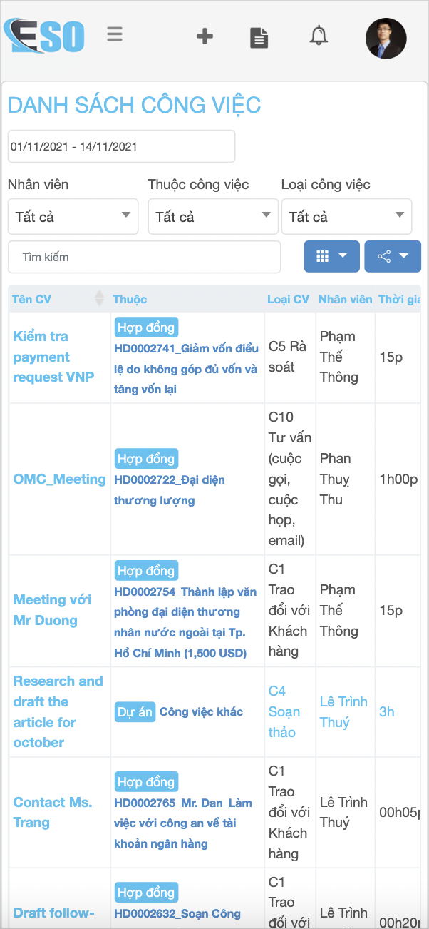 CEOPhần mềm giúp tôi tiết kiệm rất nhiều thời gian, tôi có thể nắm rõ mọi quá trình hoạt động của nhân viên, nhanh chóng truy xuất dữ liệu cần xem. Tôi thích dịch vụ ở ESO là tôi có thể nâng cấp và điều chỉnh theo nhu cầu.